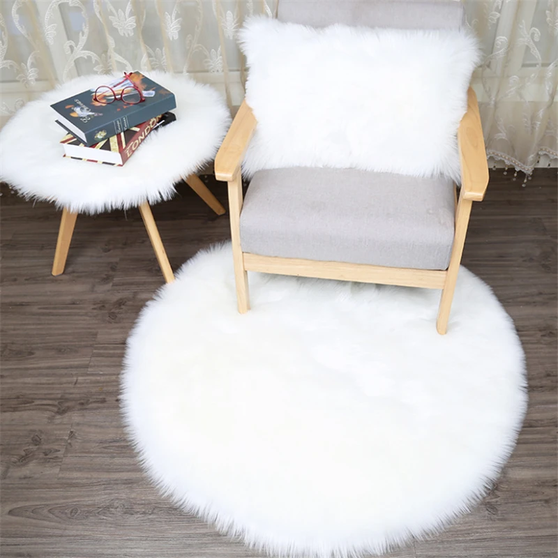 Round Soft Faux Sheepskin Fur Rugs For Bedroom Living Room Floor Plush Carpet Home Floor Mat Rug Bedside Rugs